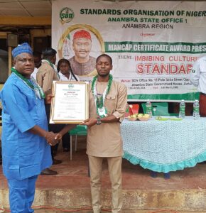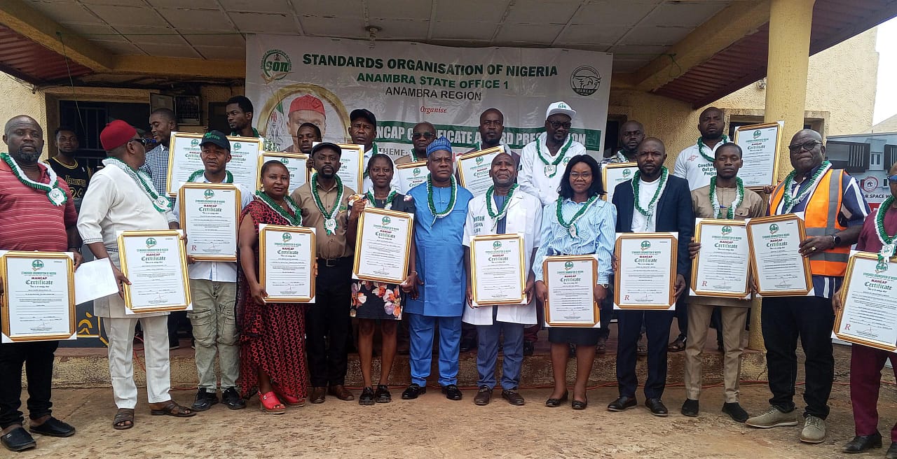 The Standard Organisation of Nigeria (SON) has issued Mandatory Conformity Assessment Programme (MANCAP) to 32 companies operating in Anambra for 104 products.
