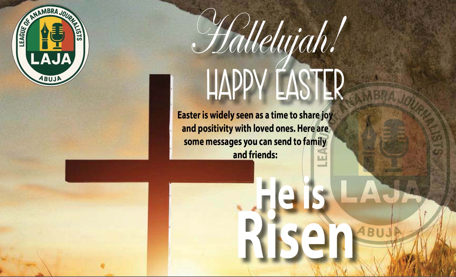 The League of Anambra Journalists in Abuja (LAJA) has extended warm greetings to Christians in Nigeria and across the world on the occasion Easter which commemorate the resurrection of
