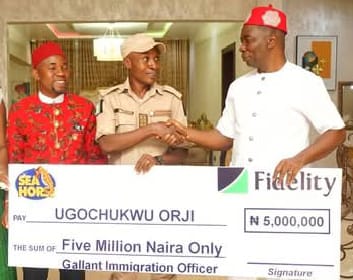 Ebuka Onunkwo Gifts Immigration Officer N5m for Nabbing Fleeing Ritualist An Anambra based industrialist, has commended Mr Ugochukwu Orji, the immigration officer who